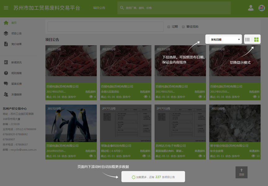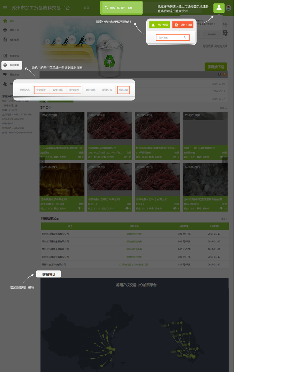 苏州市加工贸易废料交易平台将在本周末2017年1月20日晚间进行改版。改版主要涉及网站版式调整,功能与操作习惯方面尽量保持与原系统一致。为保证各位用户可以顺畅使用,特做如下说明: