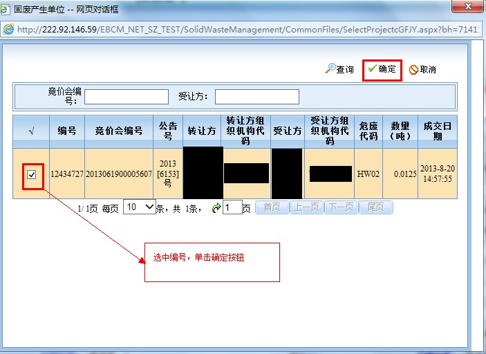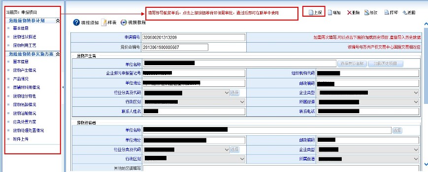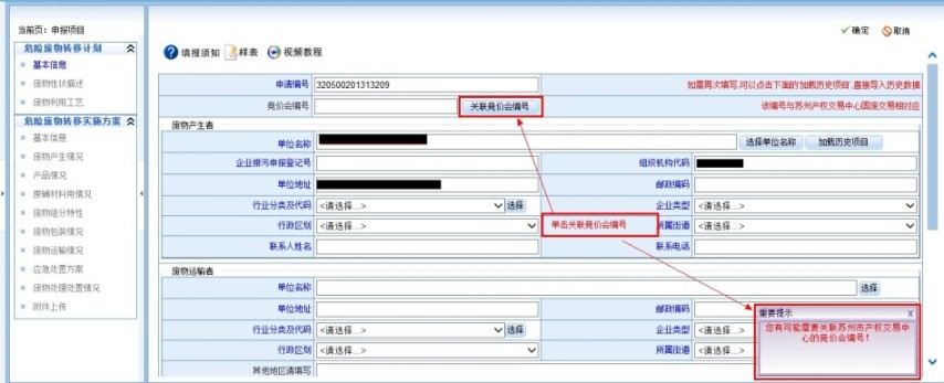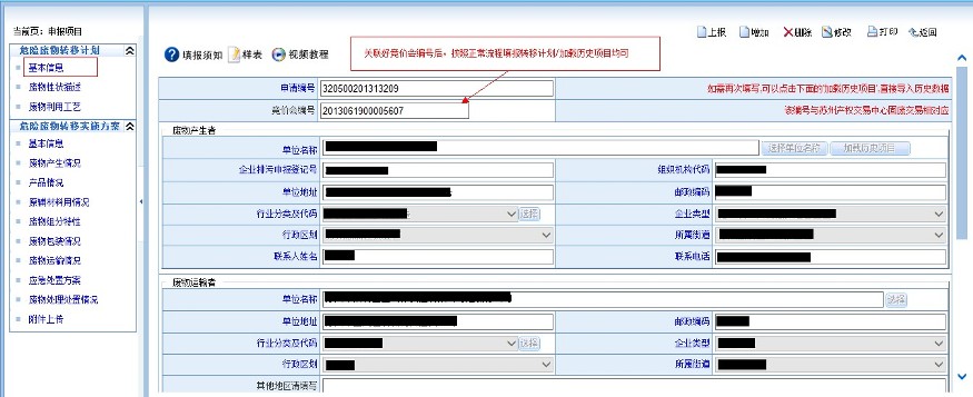 1) 在系统上线之前,竞价成功的项目加贸企业应按照旧的危废转移申请到环保部门提出申请;